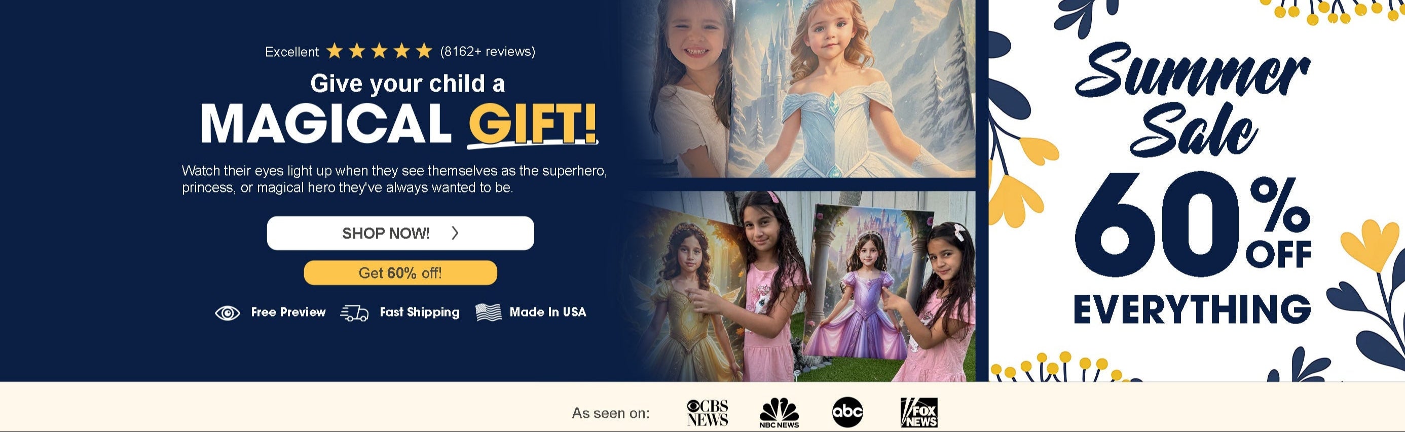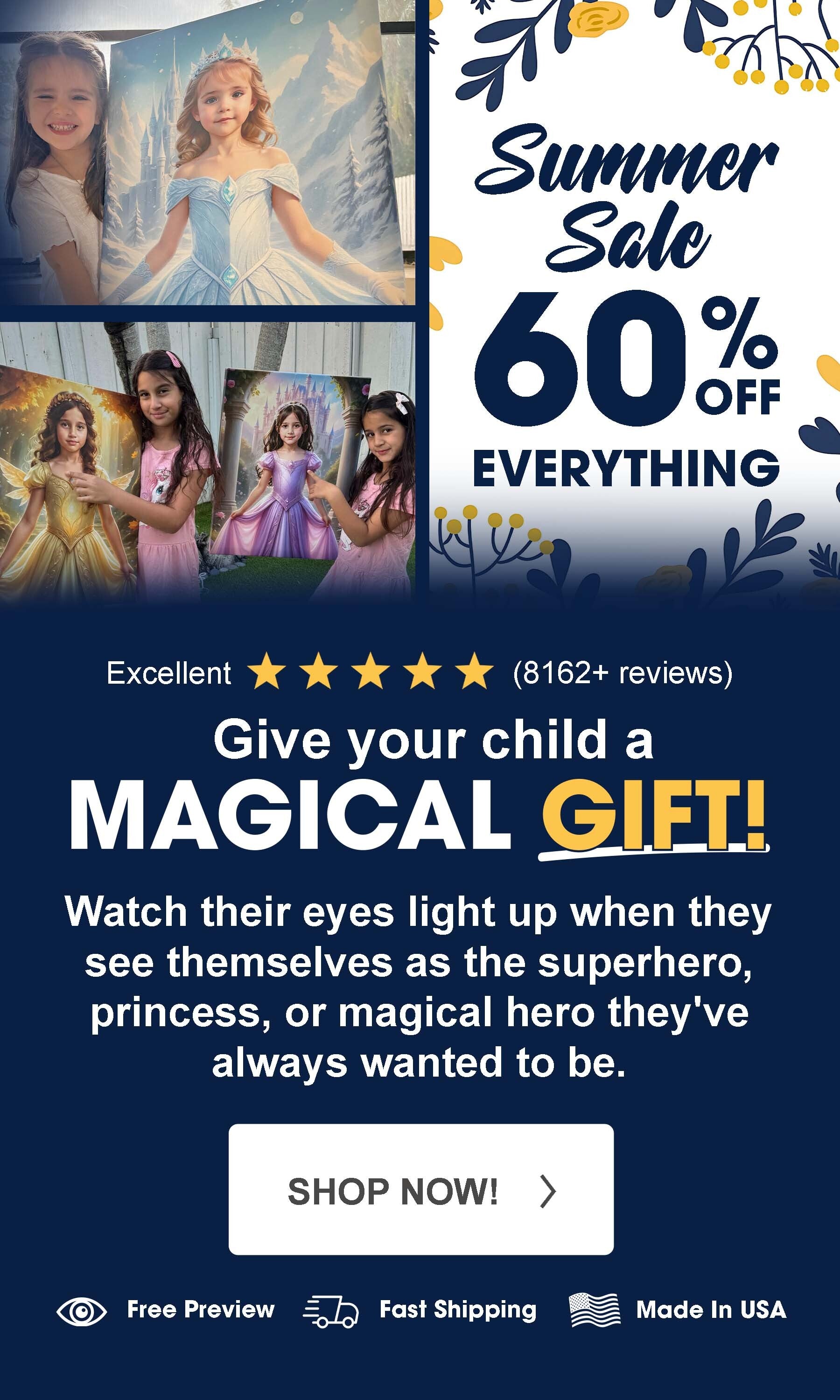 Bring your child’s imagination to life with a magical portrait that turns them into a brave knight, enchanting princess, or fearless explorer. All we need is a photo and we’ll do the rest.