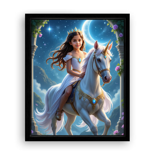 Save 33% When You Add A Frame To Your 10x08 'The Skyglow Unicorn Princess' Canvas Now
