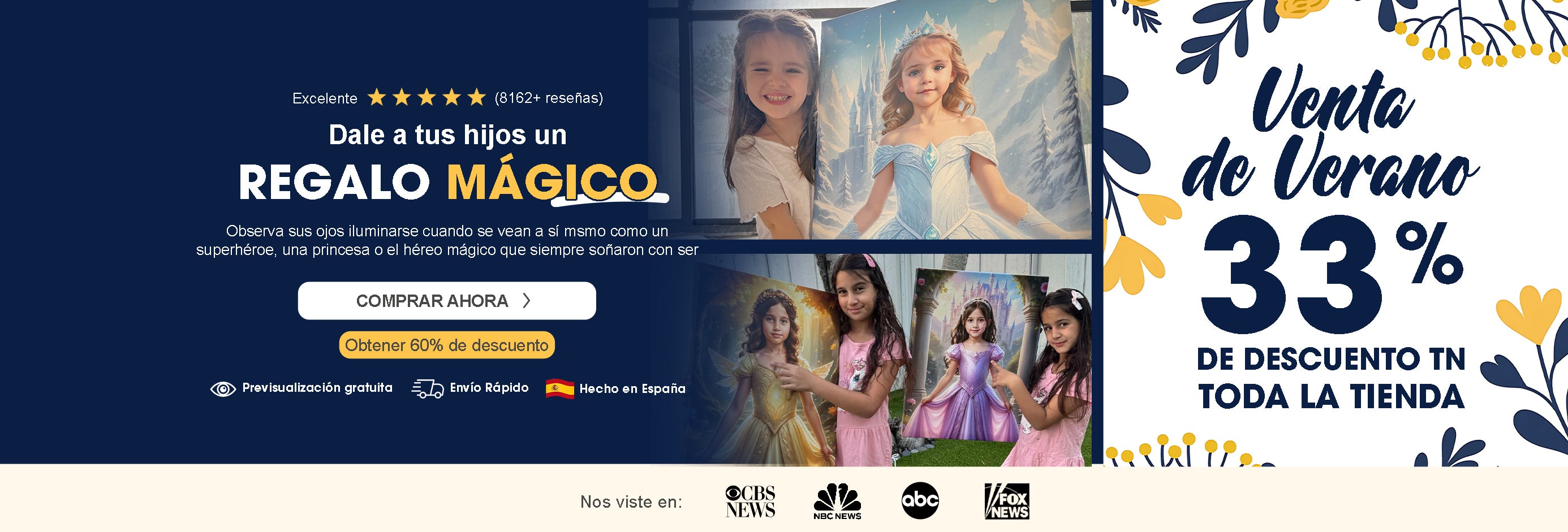 Haz realidad la imaginación de tus hijos con un retrato mágico que los transforma en un caballero valiente, una princesa encantadora o un explorador tenaz. Solo necesitamos una fotografía, y nosotros nos encargamos del resto.