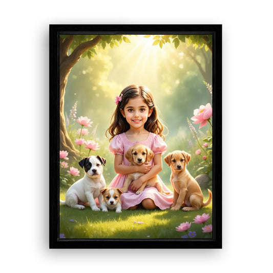 Save 33% When You Add A Frame To Your 12x16 'The Little Girl with Flowers' Canvas Now