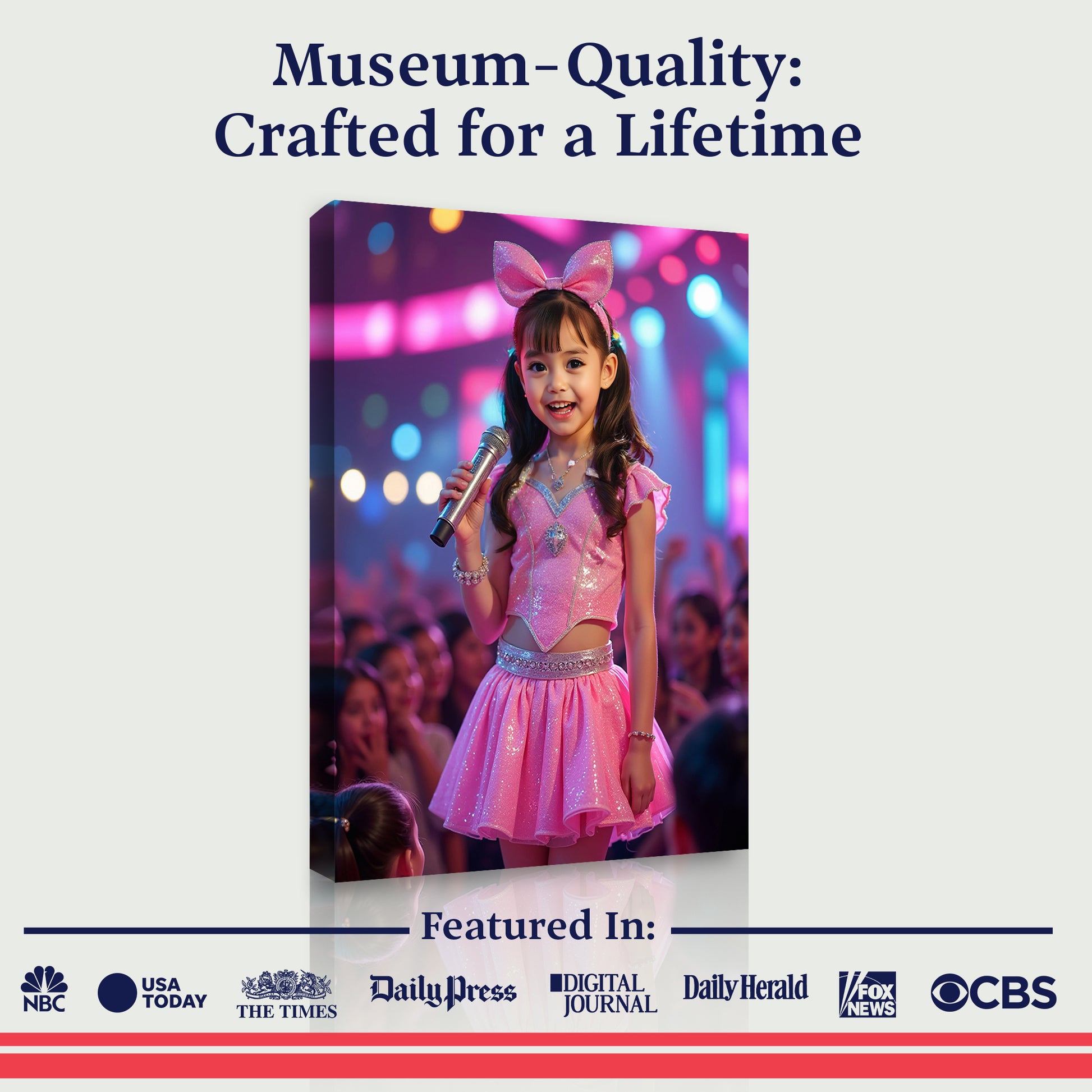 Nuestra increíble IA crea cada retrato específicamente para ellos, y lo imprimimos en un lienzo de la más alta calidad. ¡Únete a más de 150,000 familias que han hecho sentir a sus hijos como estrellas!