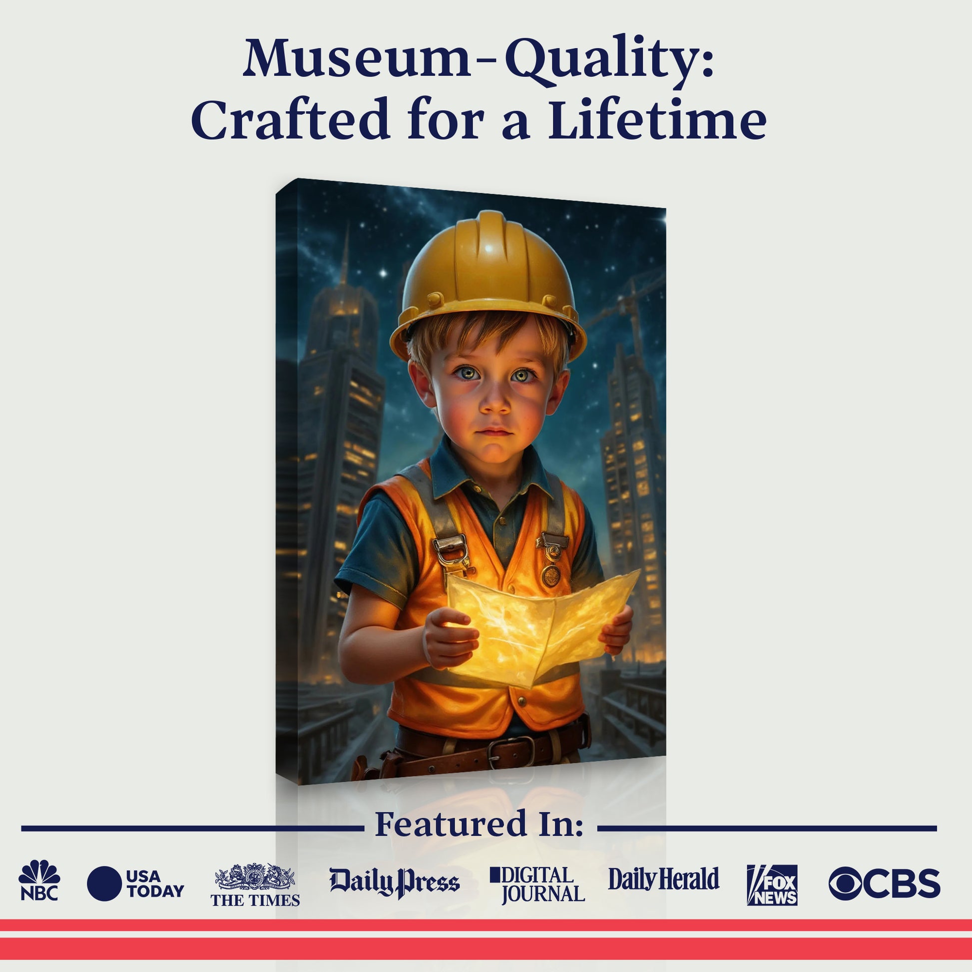 Nuestros hermosos retratos se imprimen en Estados Unidos en lienzos premium 100% de algodón, del mismo tipo usado por artistas profesionales, con tinta permanente. ¡Garantizamos que dura para siempre!