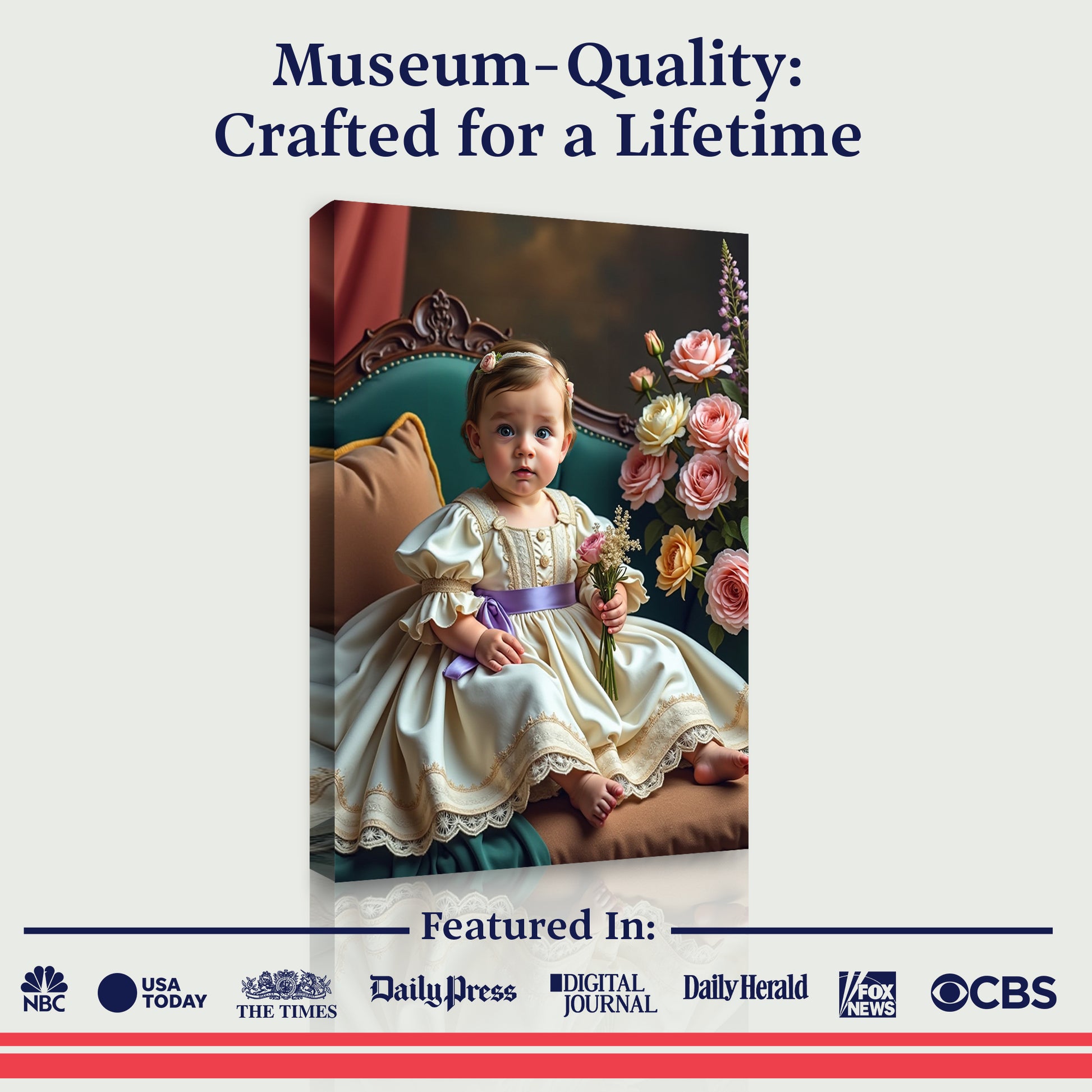 Chaque portrait est imprimé avec soin en France sur une toile haut de gamme en coton pur, avec des encres qui ne s’estompent jamais. Un rendu fait pour durer éternellement.