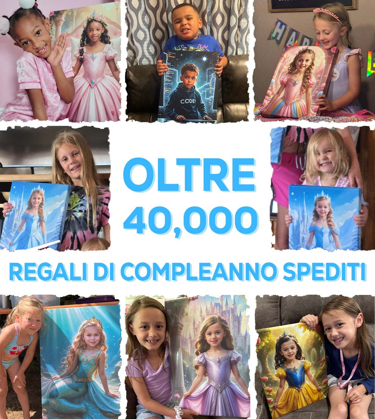 La nostra incredibile IA crea ogni ritratto solo per loro, poi lo stampiamo su una tela meravigliosa. Unisciti ad oltre 40.000 famiglie che hanno fatto sentire i loro bambini come delle star!