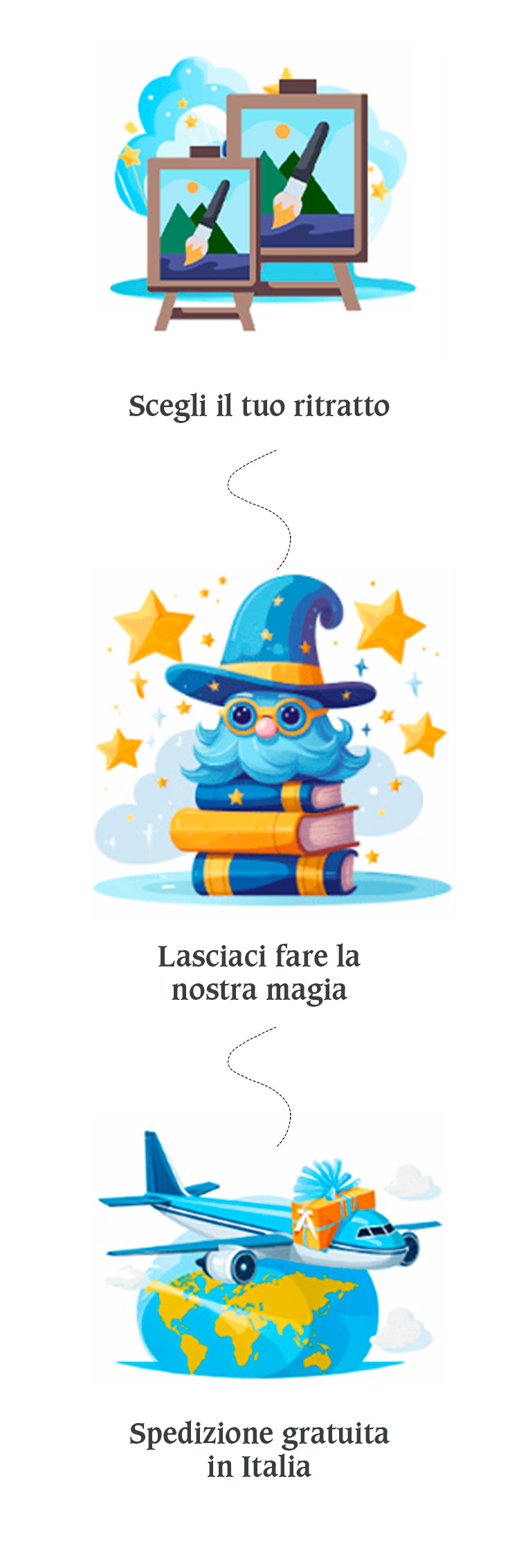 I ritratti di WonderMe vengono realizzati nel nostro laboratorio a Verona, per assicurare il controllo della qualità e una consegna rapidissima da una parte all'altra dell'Italia. La produzione italiana elimina i ritardi della spedizione oltremare e riduce l'impatto ambientale – il tuo ritratto viaggia per centinaia di chilometri, non migliaia. Qualità professionale, che altrove costa dai 300€ agli 800€, consegnata da WonderMe perché controlliamo ogni fase del processo a livello locale.